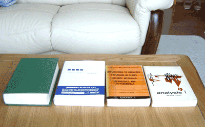 これらも、まさに名作といえるでしょう。大学生はもちろんのこと、理数系の大学へ進学しようと思っている高校生も、購入するといいでしょう。 『関数解析』の方は、ジュンク堂梅田店にしかありませんでした。 このコラムで紹介した3冊は、まさに名作です。全国の書店の理数書コーナーにおいてほしいと思います。 さらには、各国語に翻訳されて、世界中の学生が読めるようにしてほしいなあと思います。 そしてまた、個人的な願いですが、『関数解析』の続編を出してくださるといいなあ、とおもいます。 |