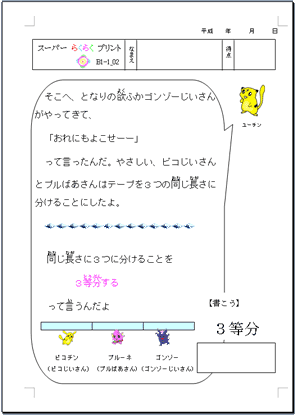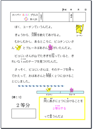 分数の学習のために準備しなければならないことをできる限り少なくする。(《スーパーらくらくプリント》では、四則計算の基本と長さやリットルなどの単位の理解のみあれば、OKです。)